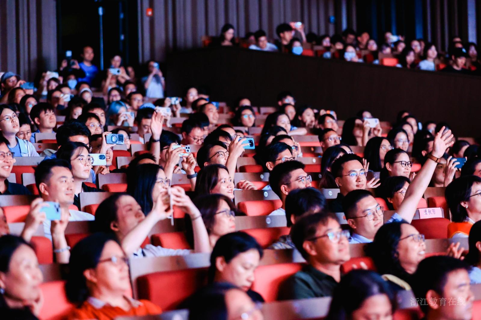 由浙江音乐学院师生共同演唱的经典曲目《长大后我就成了你》成为本次活动的压轴节目。这首深入人心的歌曲,以艺术的形式唱出了教育事业的传承与延续,诠释了教师职业的崇高与神圣,引发全场共鸣,不少教师轻声跟唱。