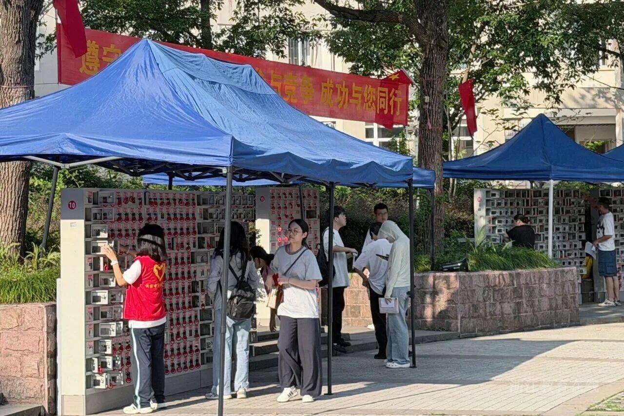 为助力考生安心放心应考,各地考点从细微处着手,纷纷开启暖心护考模式。为应对考试首日省内部分地区降雨天气,考点在安检和物品存放区域搭设雨棚,或将相关场地调整至室内。部分考点专门设置了候考室供考生在考前或午间休息,还为考生提供午餐订购、准考证打印等服务。