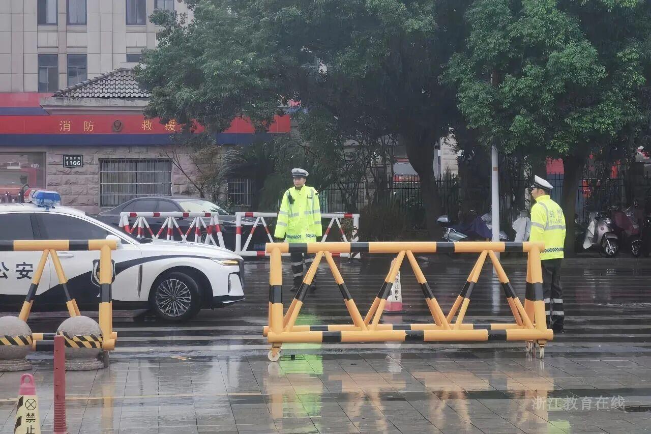 绍兴等地交警、无线电监测车在考点周边保障