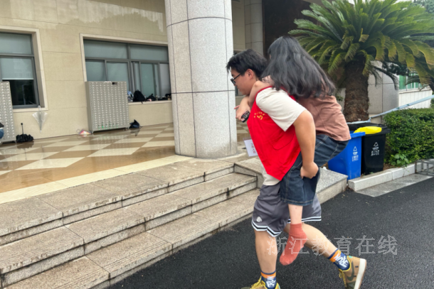 绍兴、金华考点工作人员将行动不便考生背入考场