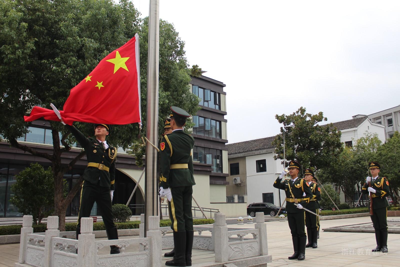 近日,新昌县实验中学邀请8位原天安门国旗护卫队护旗手进校园,他们手擎着曾在天安门广场飘扬的巨幅国旗绕操场行走,为师生们带来了精彩的队列和礼宾枪展示。护旗手曾嵘还讲述了国旗背后的动人故事,让师生们对国旗有了更深的敬意。