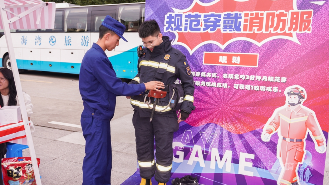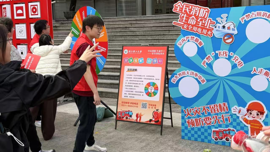 浙江理工大学通过“消防先锋‘投等兵’”等趣味游戏普及消防知识。