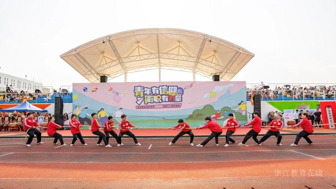 ▲衢州职业技术学院发挥拔河特色学校优势,以校园千人拔河活动为载体,设置“校-院-班”多级赛事与趣味挑战,让学生通过“一根绳、一条心、一起拼、一定赢”感受拔河精神。