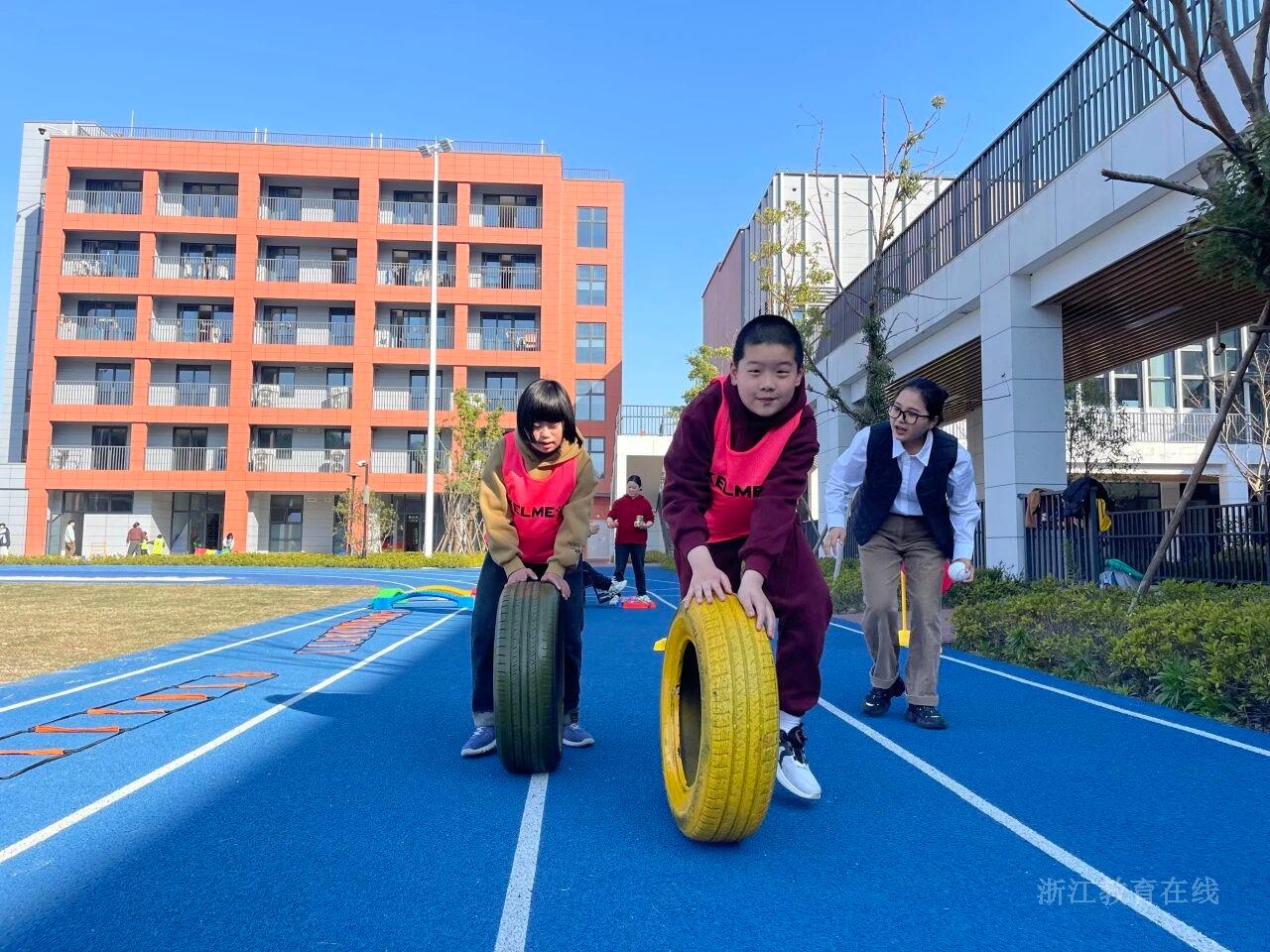 ▲绿城育华嘉兴长水实验学校丰富课间活动,将课间15分钟打造成“体育第二课堂”。