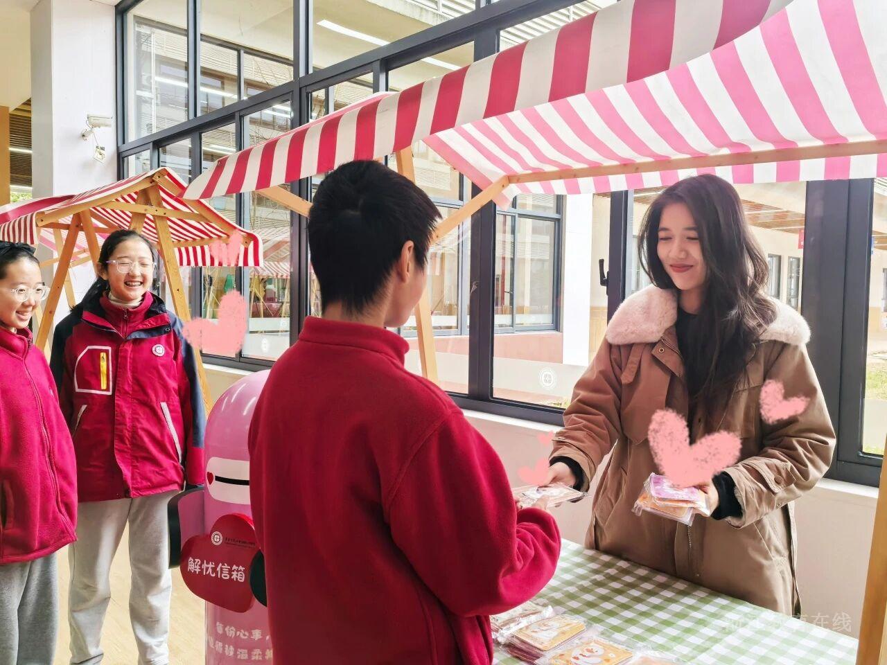 华东师范大学附属台州学校向有需要的学生分发贴有暖心祝福的暖宝宝贴。