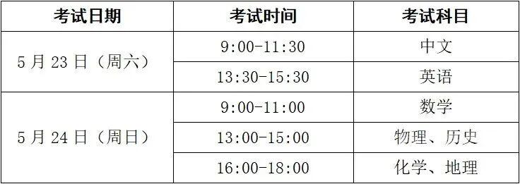 全国联招理工类考试科目为中文、数学、英语、物理、化学;文史类考试科目为中文、数学、英语、历史、地理。每科满分为150分,每个考试类别满分为750分。各科目考试时间如下:
