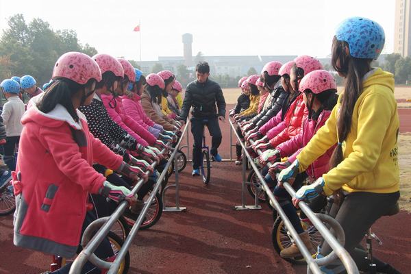 据悉,洲泉实验小学在 “一校一品”申请独轮车特色项目后,于2013年5月首先组织了一个校级独轮车训练队,已经多次参加展示,获得过不少荣誉。随后,学校组织编辑独轮车校本课程,面向全校铺开,要求独轮车进课堂,争取每个学生都学会骑独轮车。