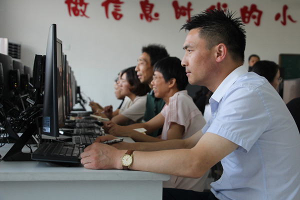 智学网培训人员在学校三楼机房对智学网网络组卷、网上阅卷、在线评测等功能进行逐一介绍,并按步骤操作演示,让在座老师直观感受到智学网大数据助力教育教学减负增效,便于教师在线高效开展教与学分析。