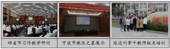 协作互助是我校研修的另一特色。我校借助浙江省实验学校校长联谊会、宁波市实联会等平台,与上海、杭州、宁波市等省内外先进学校建立联谊,协作互助,共享研修资源与成果。同时,组织承办各级各类教学研讨活动,引进各级各类专家来校指导。这些重量级的大型活动,不仅为学校老师提供了足不出户即享受大咖教学风采的机会,又使教师在观摩、聆听、反思、研讨中收获成长。