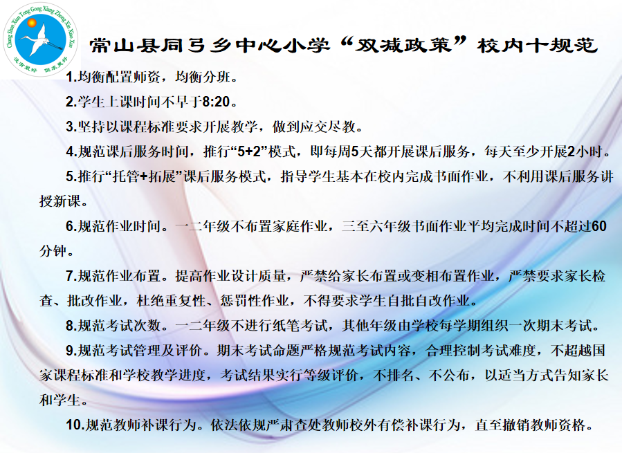 常山县同弓乡中心小学推出“双减”政策校内十规范——
