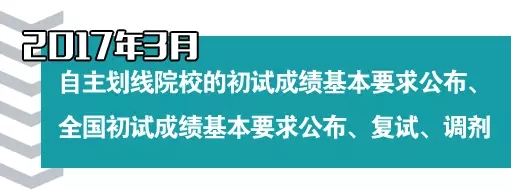 2.教育部将公布2017年全国硕士研究生招生工作管理规定、招生考试公告,确定初试时间、初试科目、报名要求等内容。考生特别要注意认真阅读报名要求。