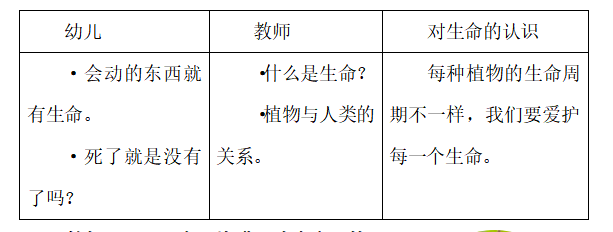 在开展“生命小组”活动的过程中,教师仔细观察并记录幼儿活动中的言行,了解他们当下在关注什么、讨论什么、有何种想法、在解决怎样的问题等。预设问题的可能性,在进行反思讨论的过程中儿童会有可能说出什么样的话,什么样的理论,又需要考虑儿童说出之后,作为教师该如何回应,教师的回应方式会不会局限儿童的思维,如何基于主线将儿童的思维深挖,产生激发性的支持行为。